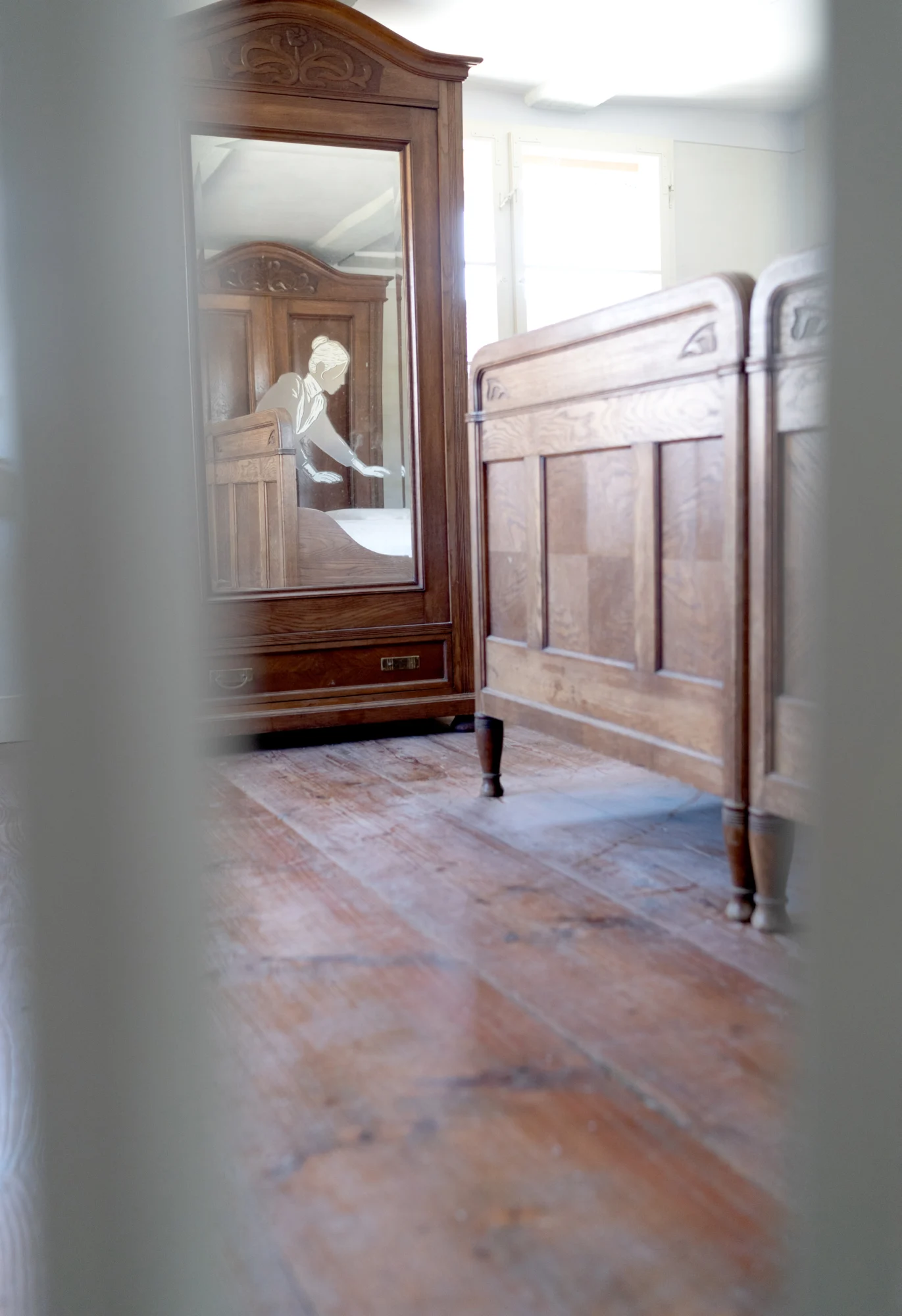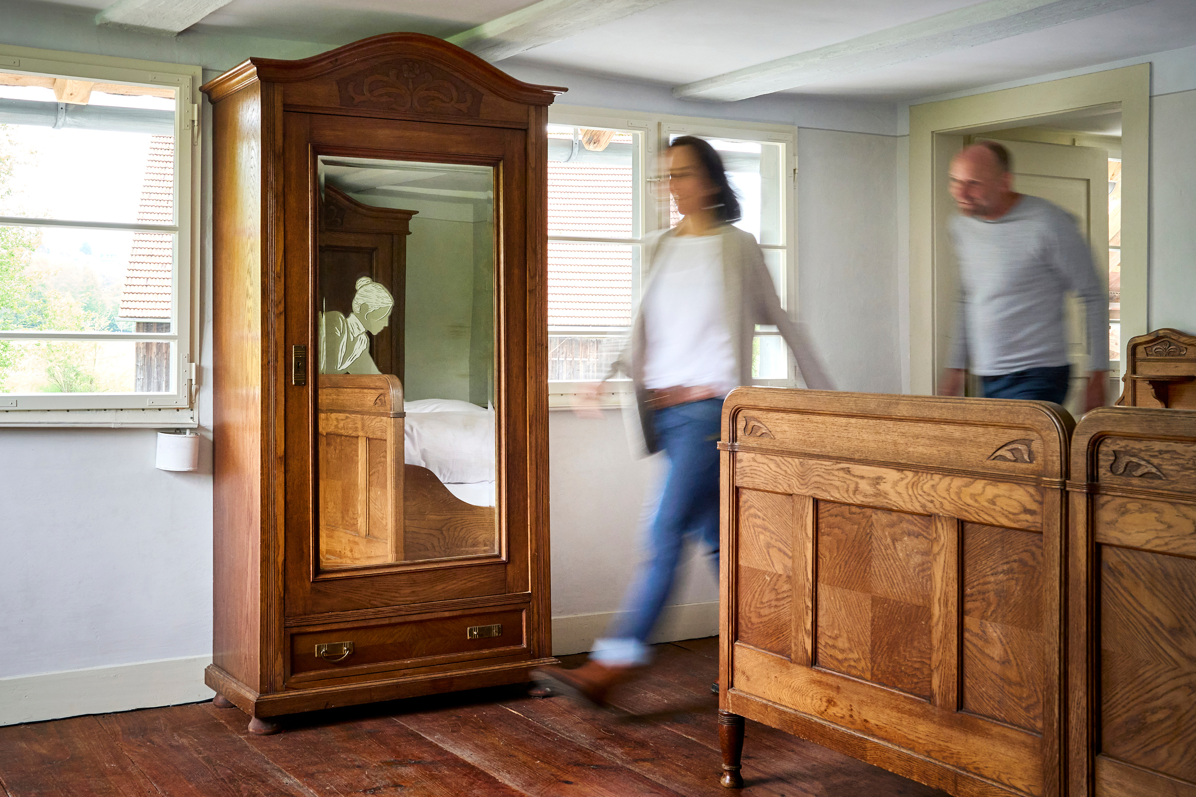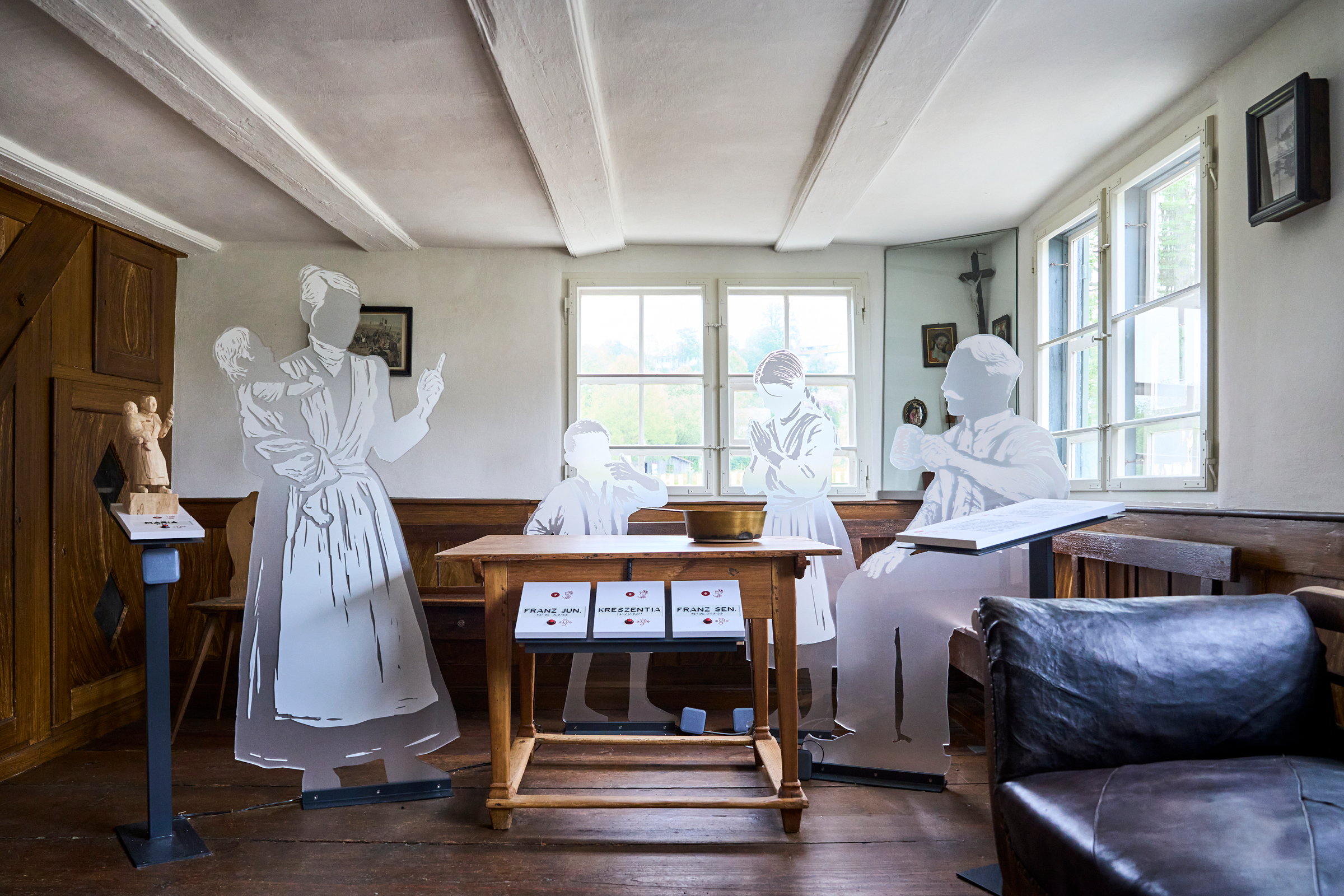 Unsere Aufgabe lautete: Erzählt Geschichten rund um die kleinbäuerliche Familie Beck, die das Gehöft um 1900 bewirtschaftete. Die Herausforderung: Von den Eheleuten Franz und Maria und ihren Kindern Anna, Kreszentia und Franz Junior sind keine visuellen Zeugnisse wie Fotos oder Gemälde überliefert. Und ihre Biografien liegen uns nur bruchstückhaft vor. Auch originale Möbel oder Fotos der Interieurs sind nicht hinterlassen. Wir können uns also kaum ein visuelles Bild der Familie und ihrer Behausung machen.