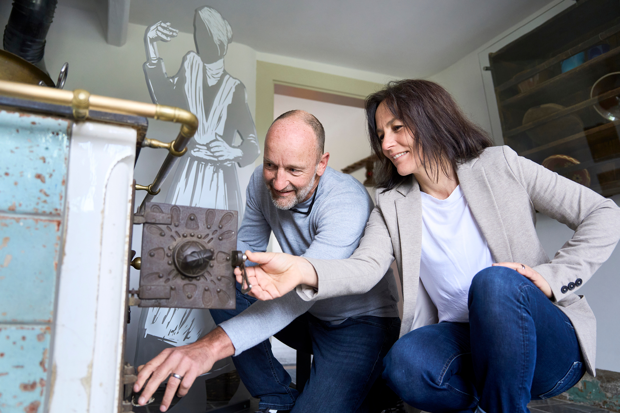 Weitere interaktive Hands-On-Stationen bieten informative und sinnlich haptische Erlebnisse: Ein taktiler Umgebungsplan, eine Fühl-Kuh, tastbare Rätsel-Boxen und Faksimiles historischer Exponate wie Figurinen mit Kleidung und Accessoires laden zum Anfassen und Ausprobieren ein.