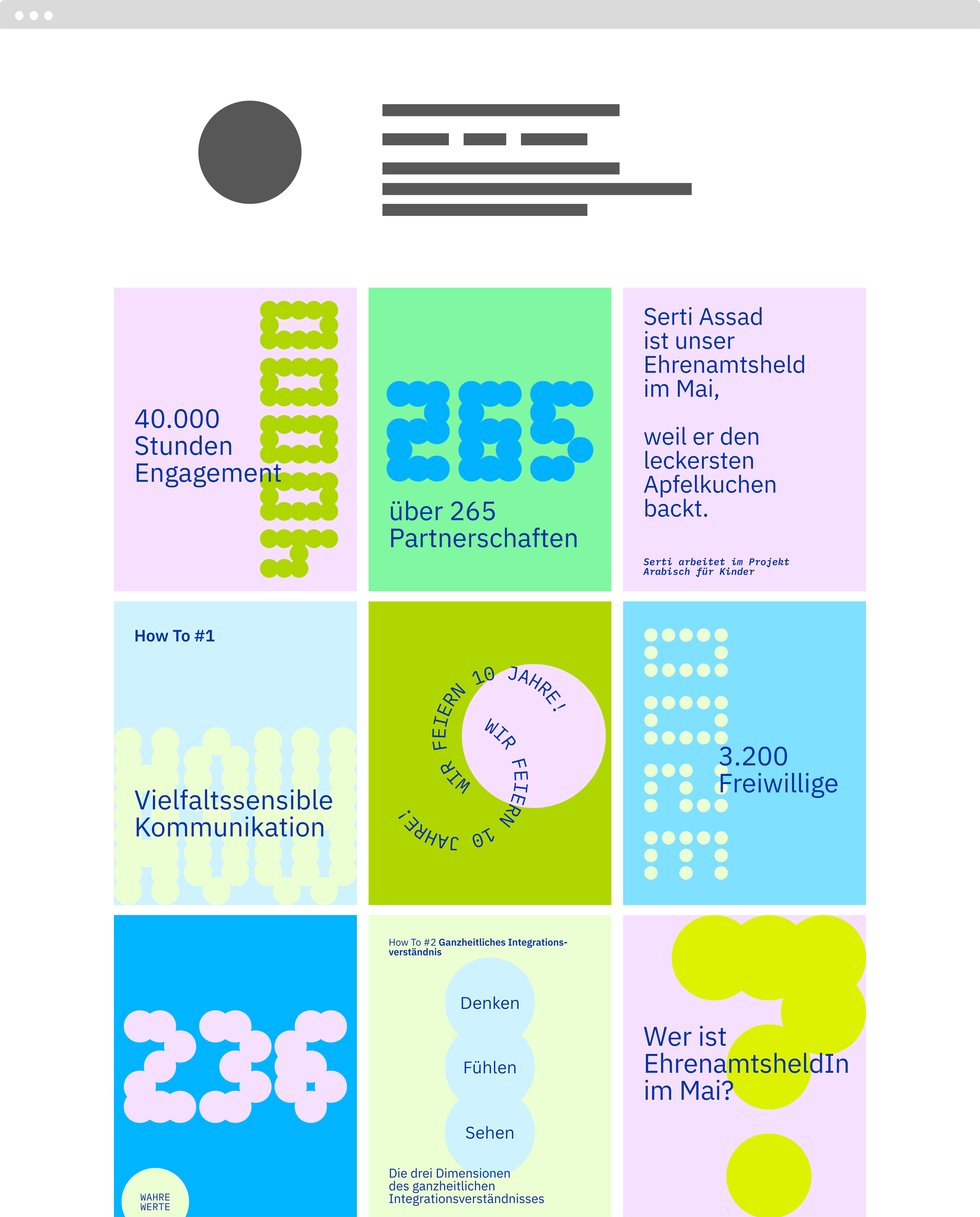 Das Projekt „Miteinander Leben — Ehrenamt verbindet” der lagfa bayern bringt Menschen mit Migrationshintergrund ins Ehrenamt. In vielen kommunalen Projekten in Bayern schaffen Akteur:innen seit 2016 Möglichkeiten für aktive Teilnahme und Austausch. Zum 10-jährigen Jubiläum haben wir dem wichtigen Projekt ein neues Logo, eine fröhliche Identity und eine umfangreiche Social-Media-Kampagne gezaubert.