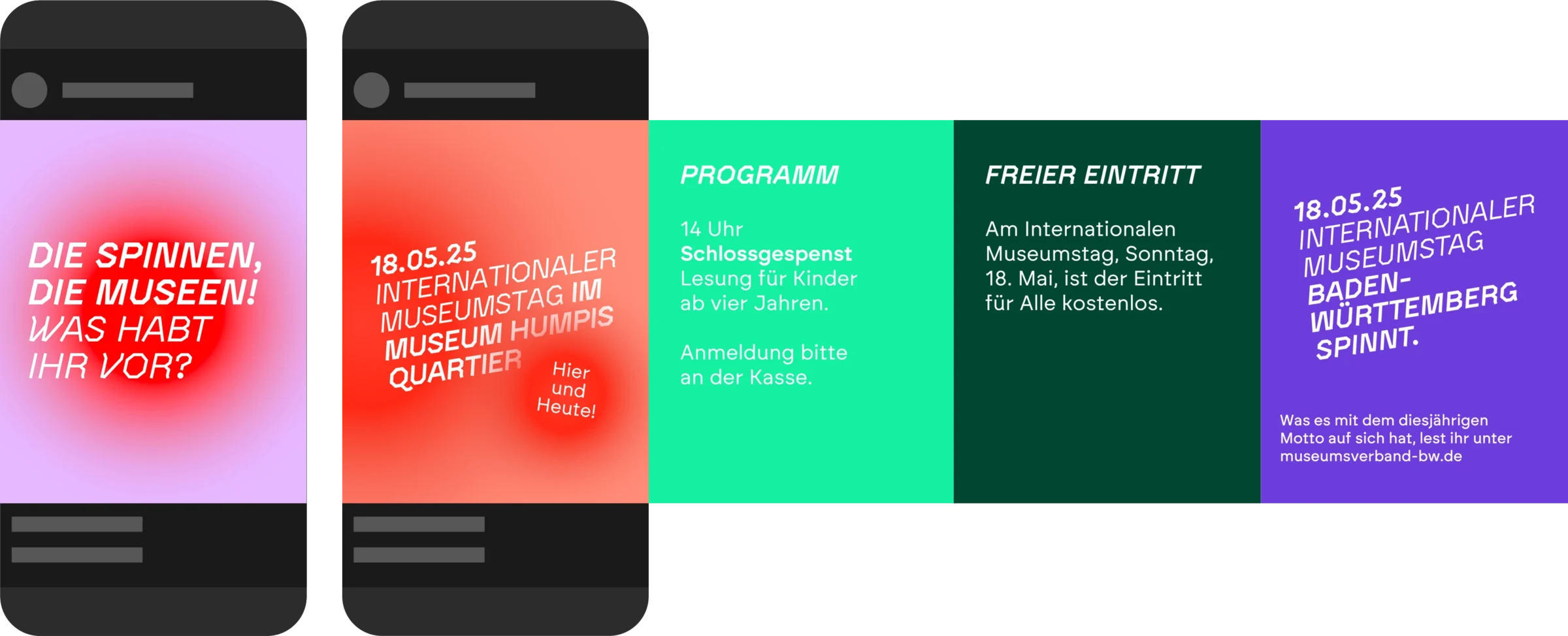 Zur Bewerbung des Internationalen Museumstags und zur Vernetzung der Baden-Württemberger Museen haben wir uns die interaktive Kampagne „Baden-Württemberg spinnt.“ ausgedacht. Im ersten Jahr konnten wir 146 Museen zum Mitmachen gewinnen: Sie haben bei Instagram als Colab-Partner mit rund 150 Postings knapp 350.000 User erreicht. Wir freuen uns auf die Fortführung in den kommenden Jahren.