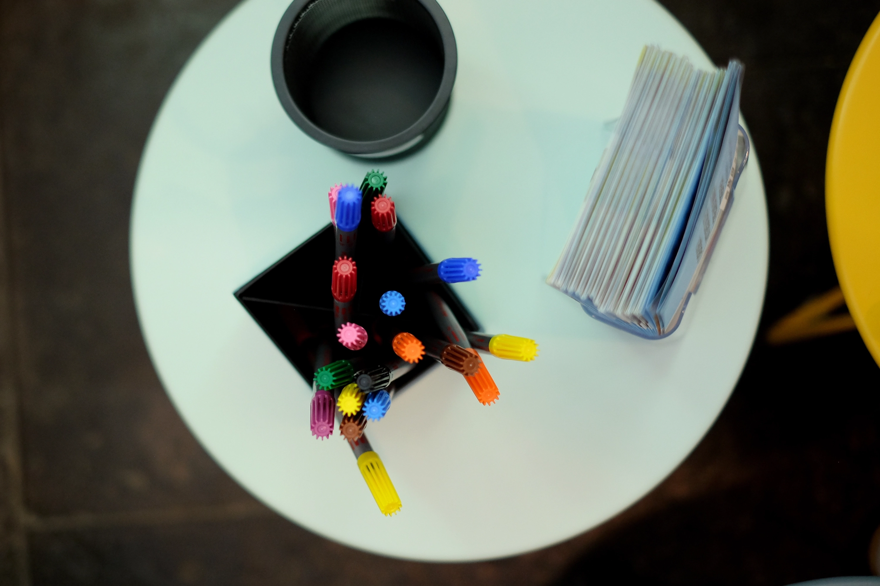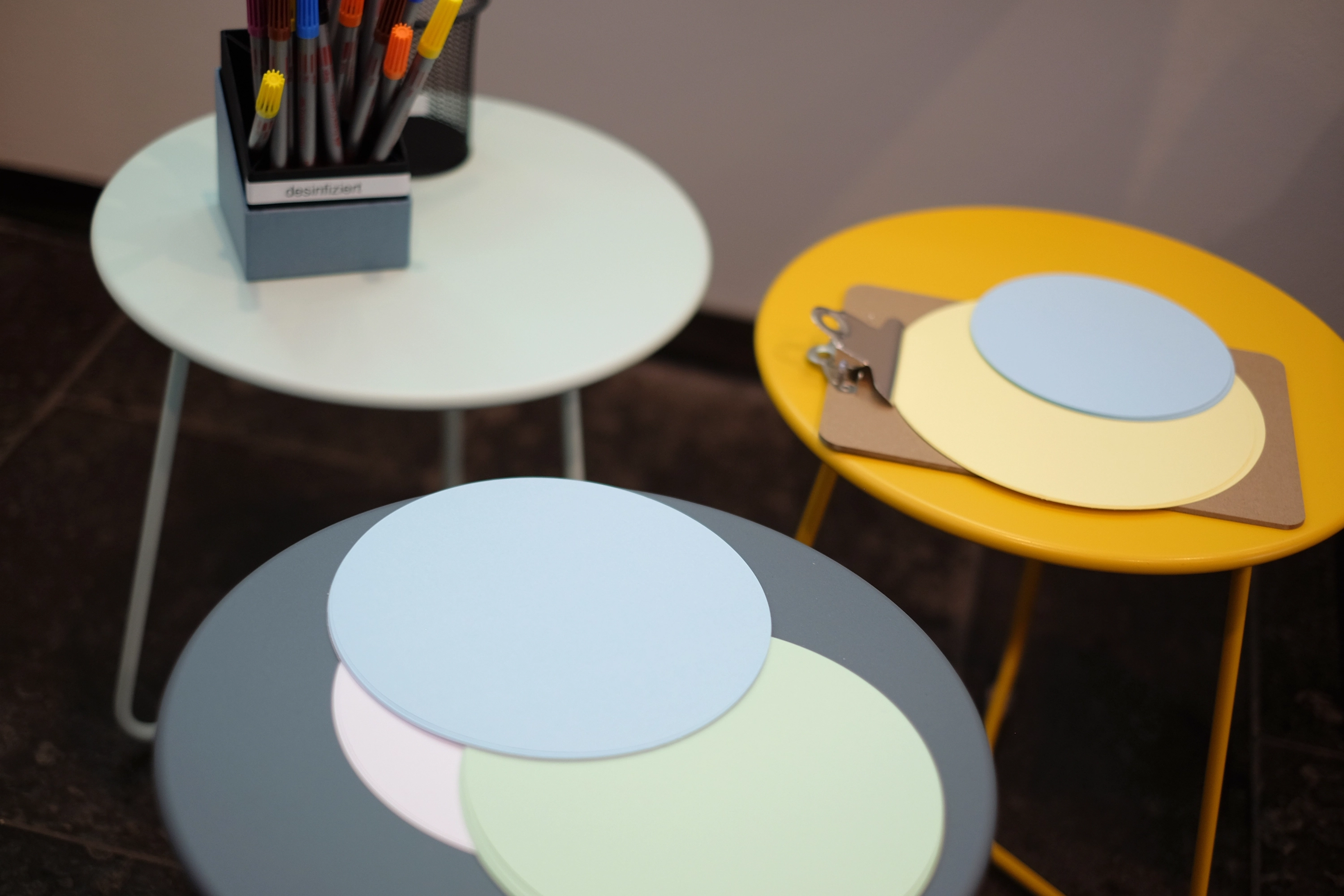 Ein pragmatischer Ansatz war uns wichtig: Zugunsten der Nachhaltigkeit haben wir bestehende Einbauten umgenutzt, vorhandenes Mobiliar upgecycelt und durch farbenfrohe Tische und Hocker ergänzt. Mit zweckmäßigen Eingriffen und erschwinglichen Maßnahmen konnten wir einen Wohlfühl-Ort schaffen, der von Besucher:innen angenommen und von Gruppen für Besprechungen genutzt wird.