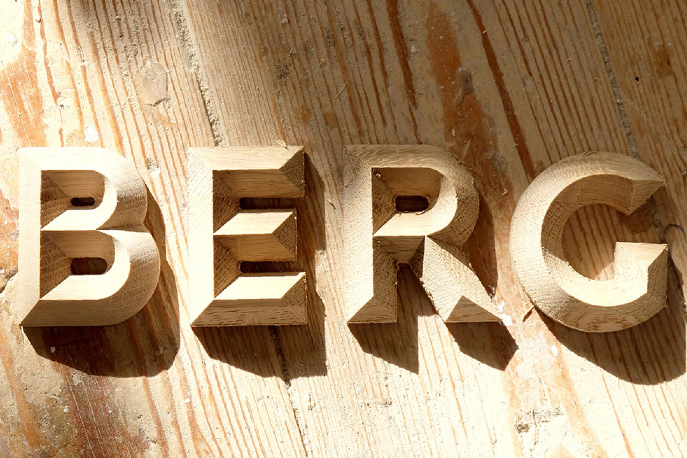 Für das Projekt haben wir eine eigene Schrift gezeichnet — die „Sektor E“. Ihr ist das Wesen des Berges immanent; die einzelnen Buchstaben definieren sich durch den scharfen Grat. Die Zeichen sind linear konstruiert und sowohl für zweidimensionale Anwendungen als auch für die Produktion dreidimensionaler Schriften ausgearbeitet.