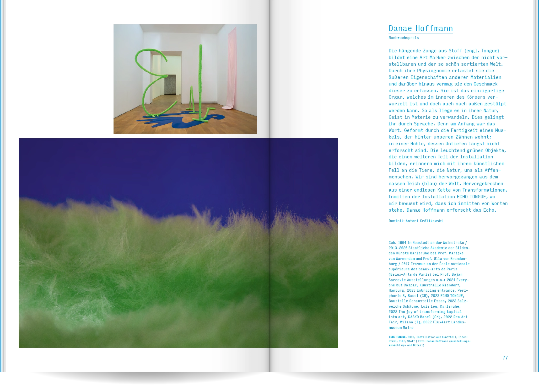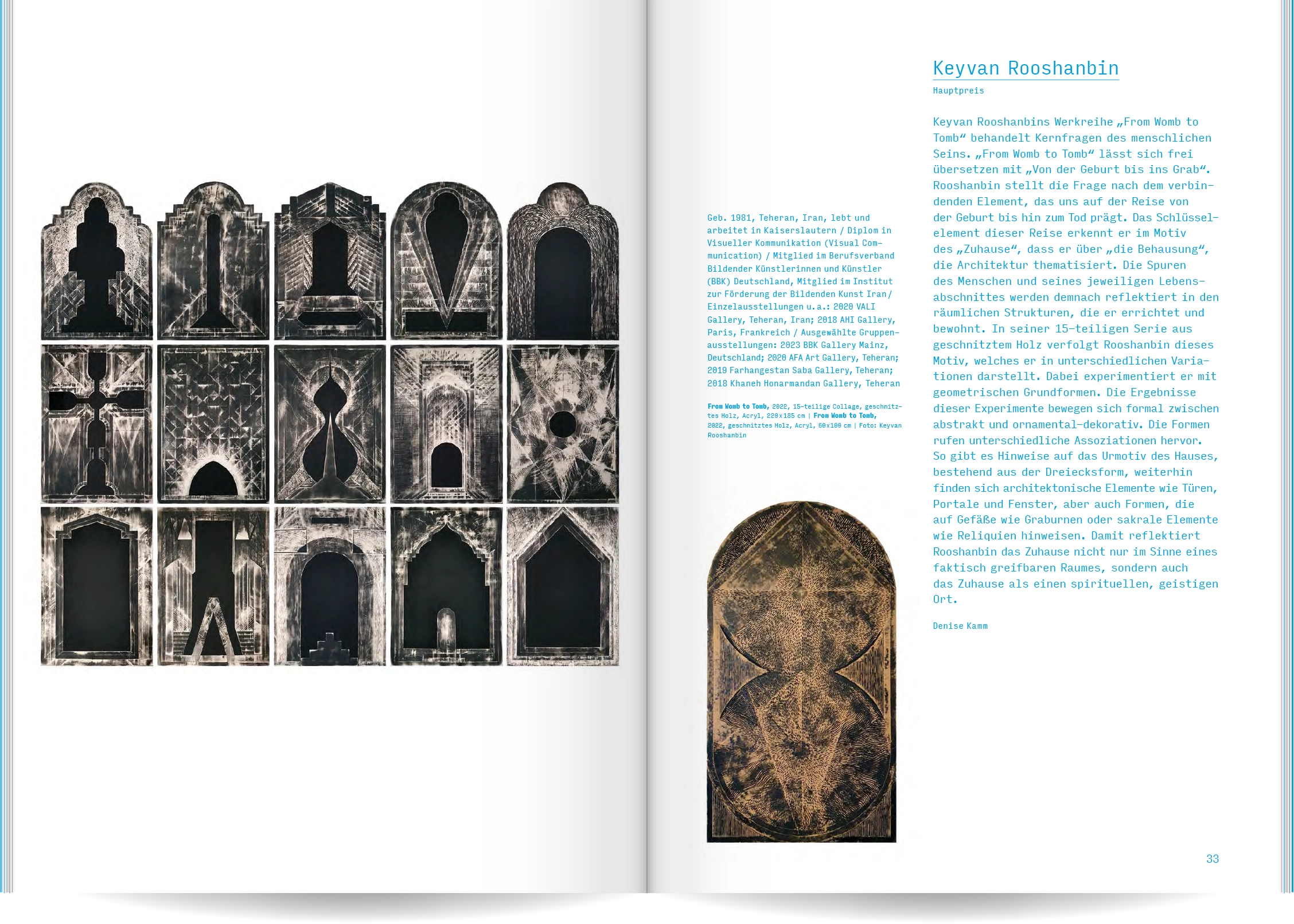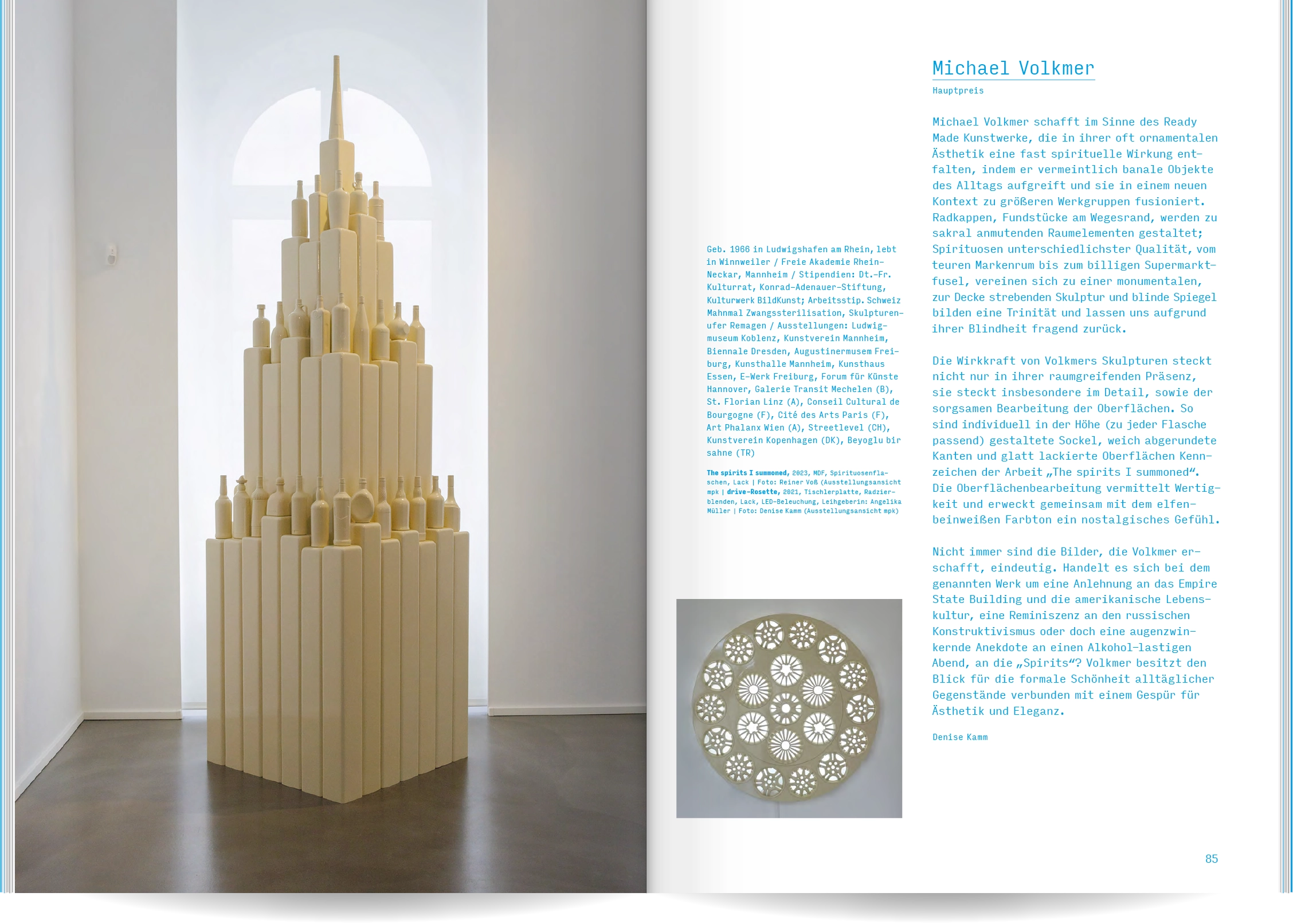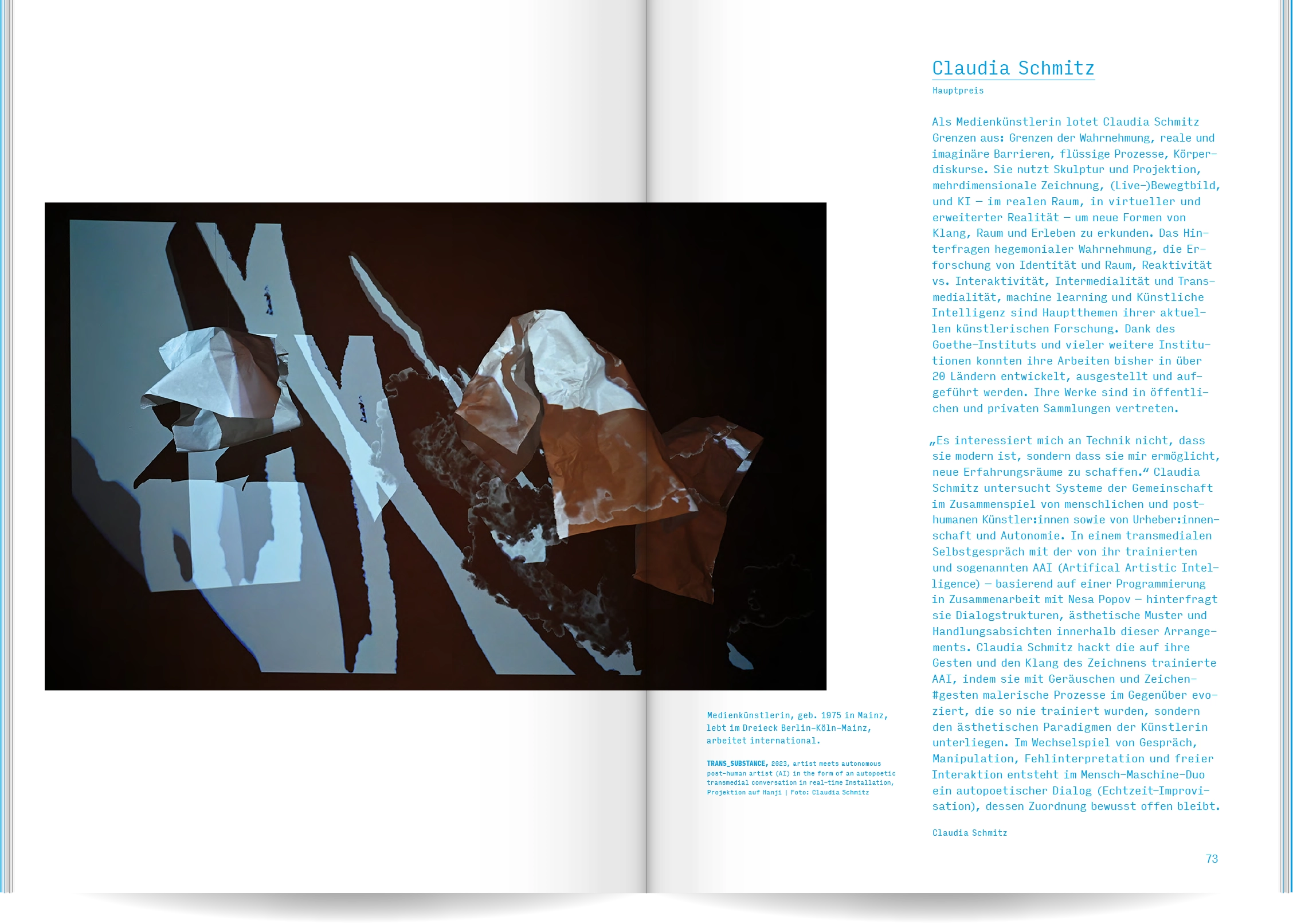 „Transformationen“ lautete das Motto des Pfalzpreises für Bildende Kunst 2024, ausgeschrieben vom Bezirksverband Pfalz. Wir durften den renommierten Preis visuell ausstatten und den umfangreichen Katalog zur Ausstellung gestalten. Auf 96 Seiten werden in vier Themengruppen die Werke der Preisträger:innen vorgestellt — in Wort und Bild, ergänzt durch eine kurze Vita. Hinzu kommen kleine Essays und Jurybegründungen.