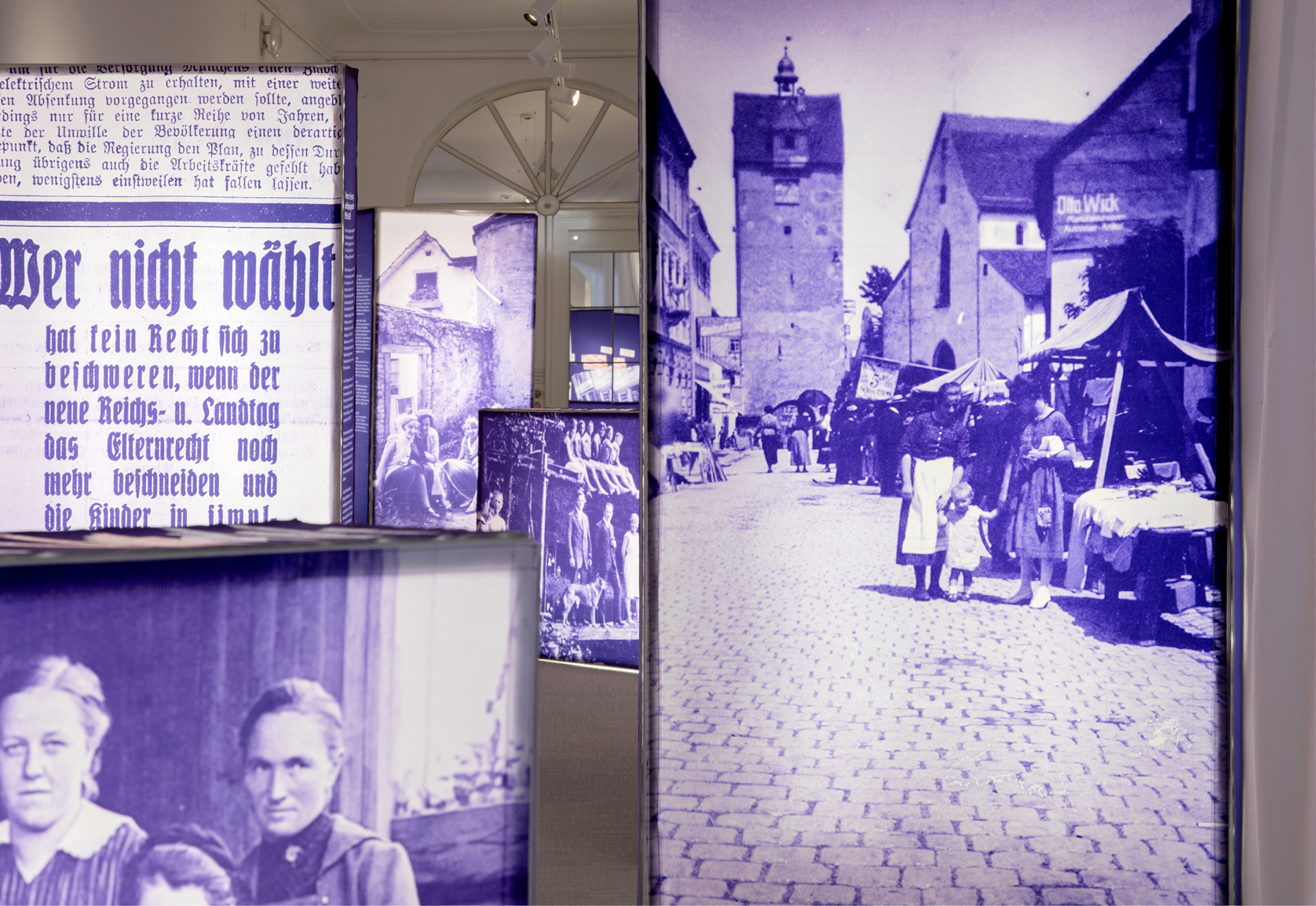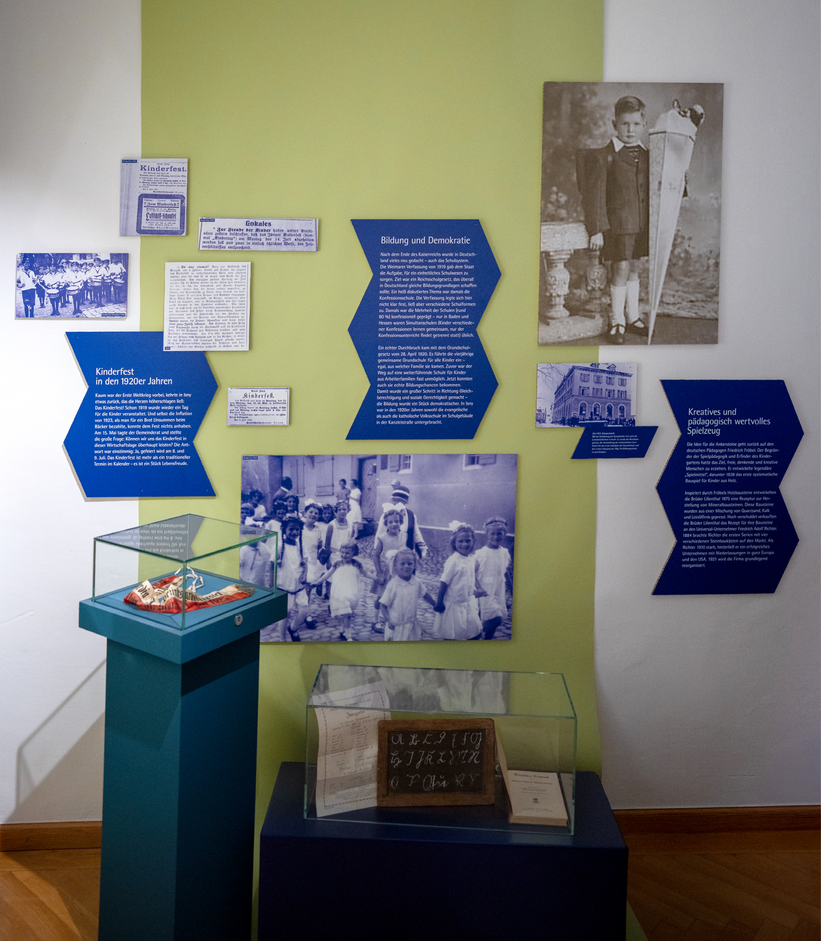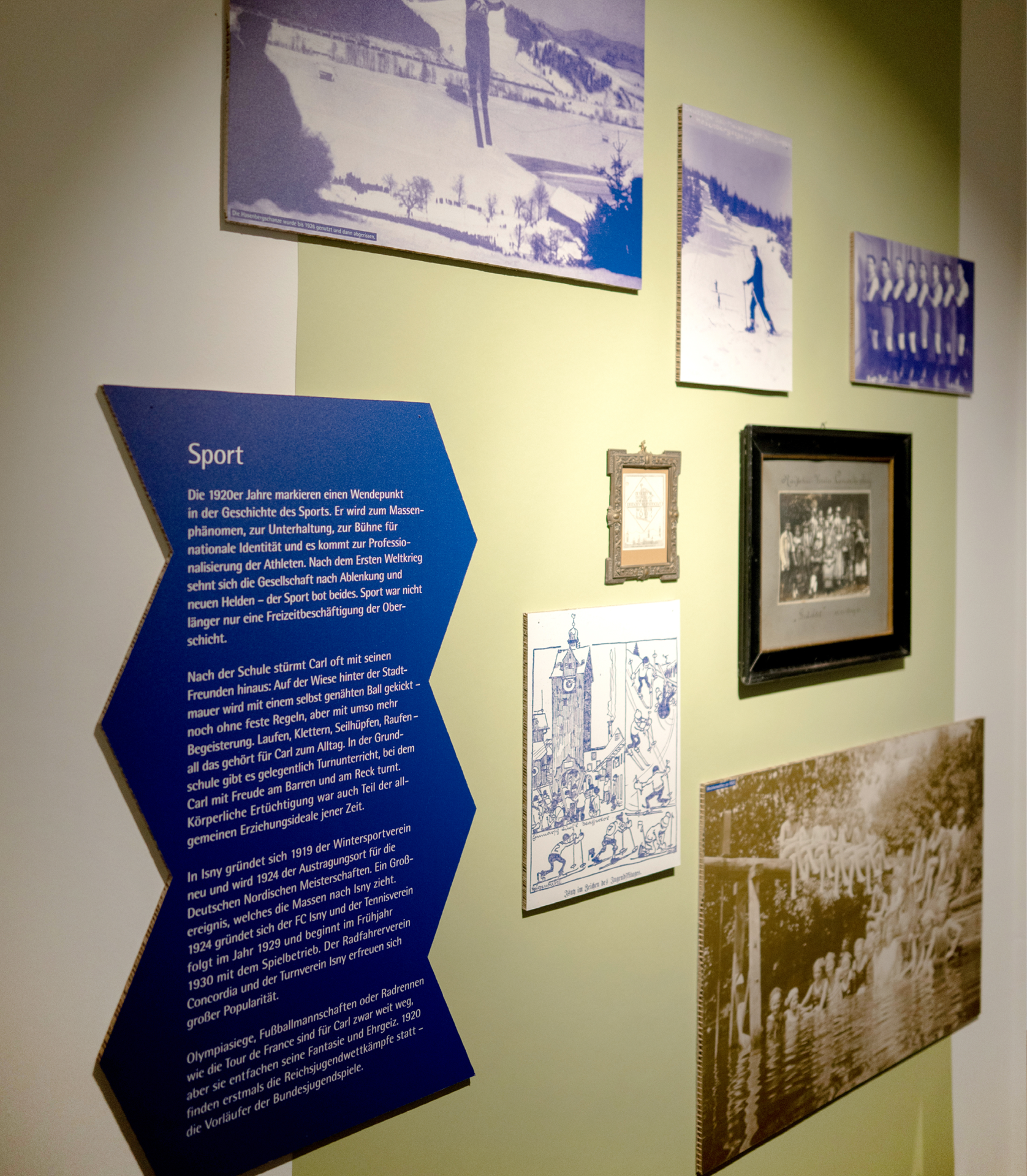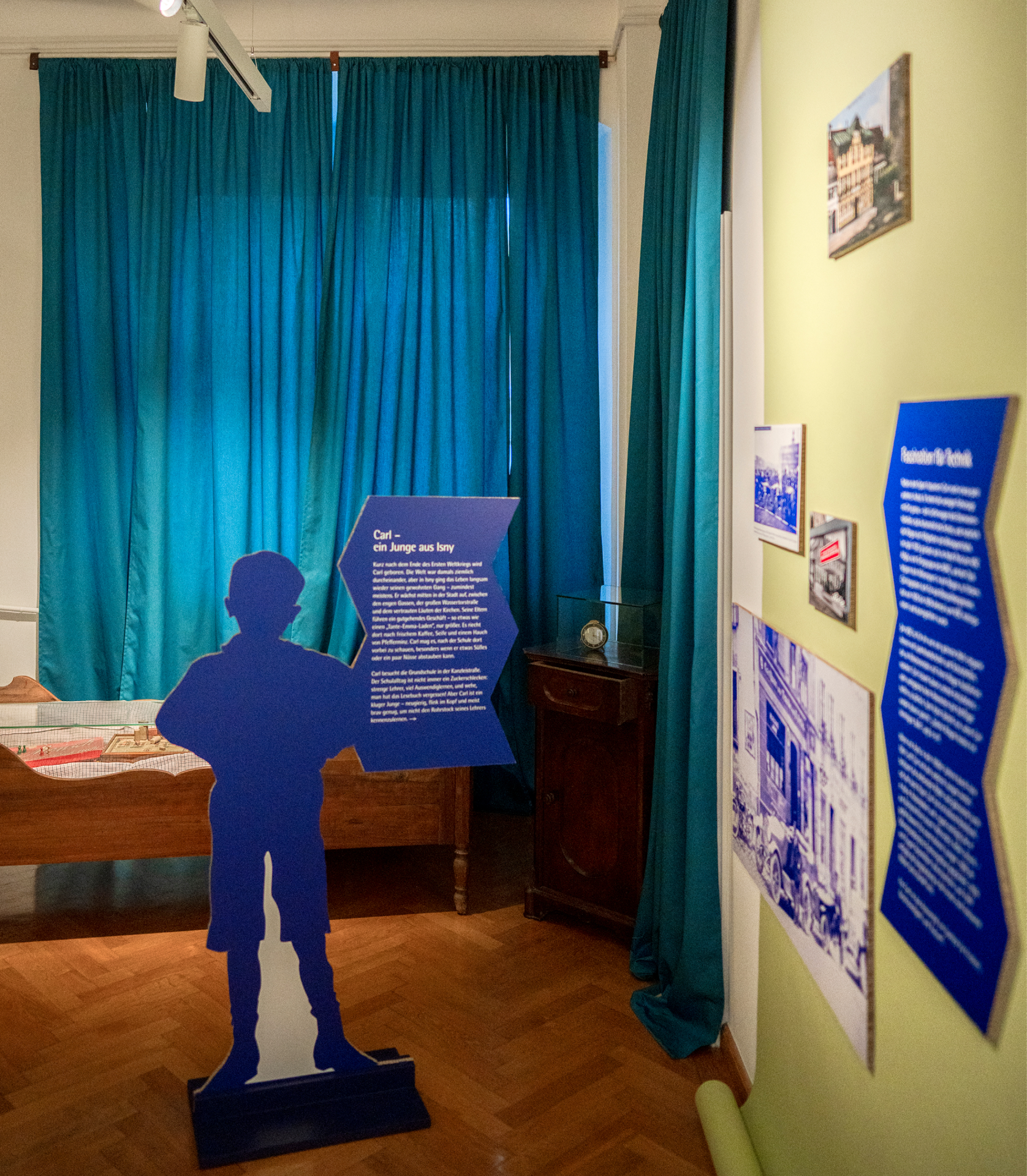Drei weitere Räume lassen in die persönlich anmutenden Lebenswelten der fiktiven Charaktere Berta, Carl und Albert eintauchen. Die „Isnyer Bürger:innen” geben Einblick in persönliche Themen, Werte und Interessen: Wir erfahren von weiblicher Selbstständigkeit, von einer Kindheit in politisch unruhigen Zeiten und lernen einen Kriegs-Heimkehrer kennen. Zahlreiche Fotos, Zeitungsausschnitte und zeitgeschichtlicher Relikte wie Spielsachen und Möbel vermitteln emotionale Perspektiven auf die Ereignisse jener Zeit.