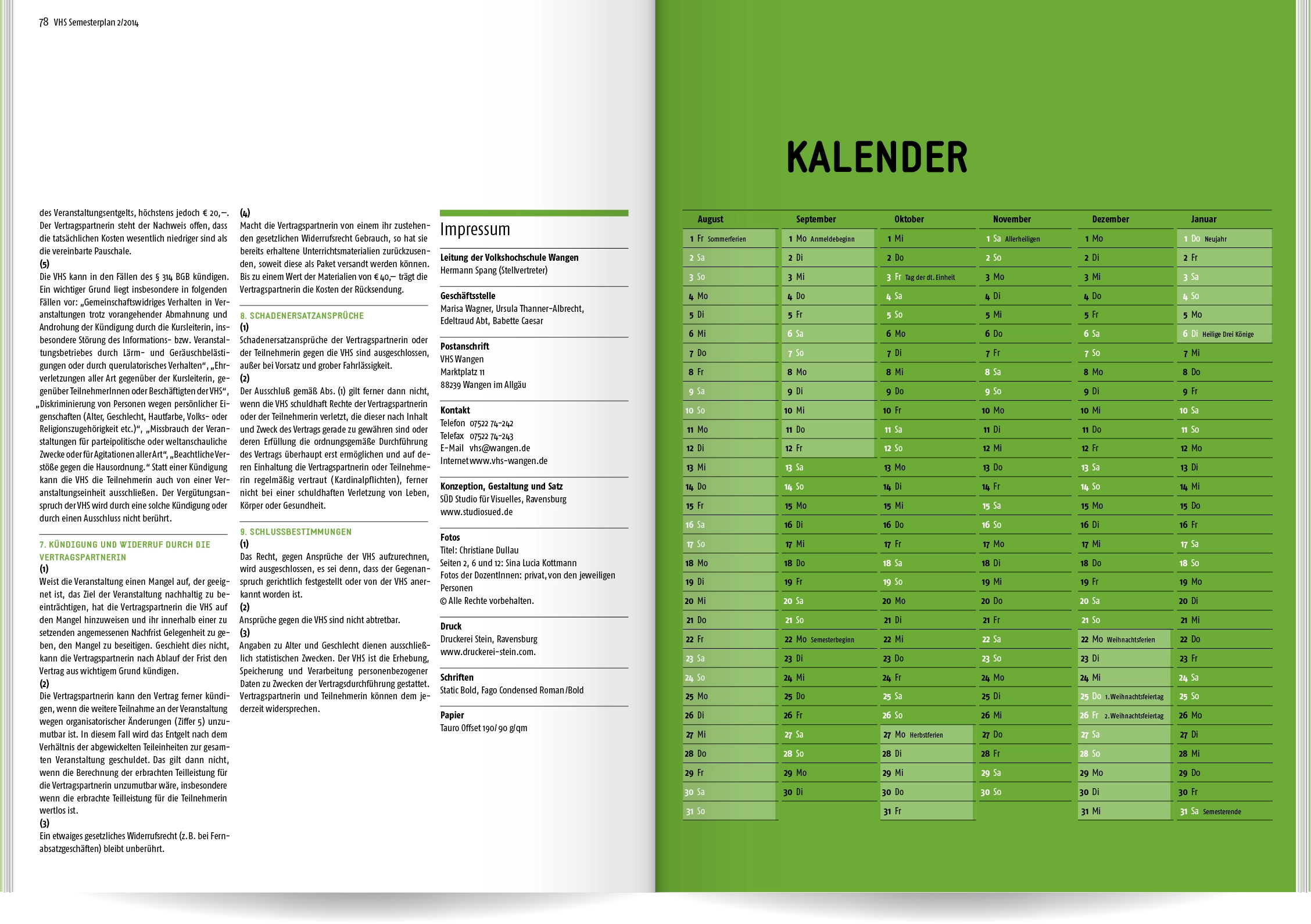 Editorial Design, Volkshochschule Wangen und Kißlegg